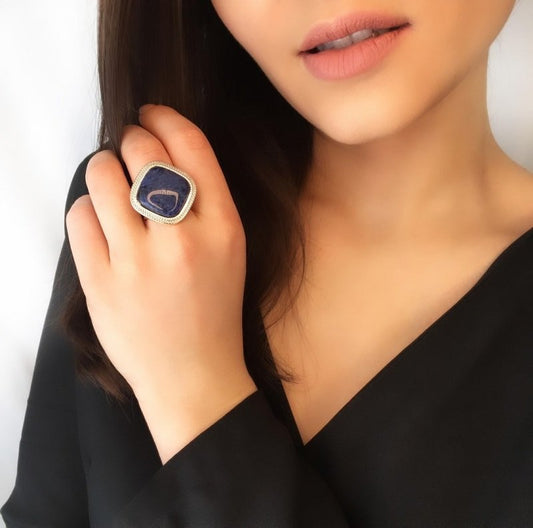 Bague plaqué or avec pierre bleue