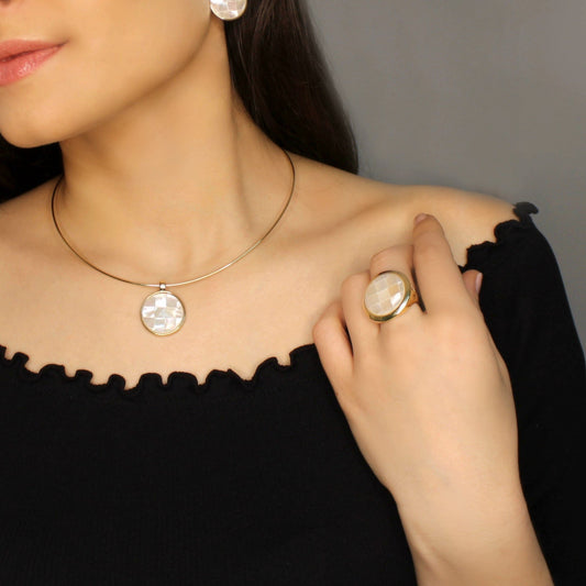 Vergoldeter Ring mit geometrischem Mosaikdetail