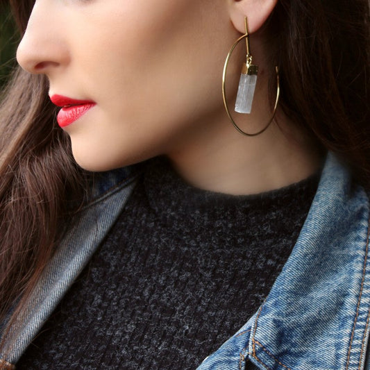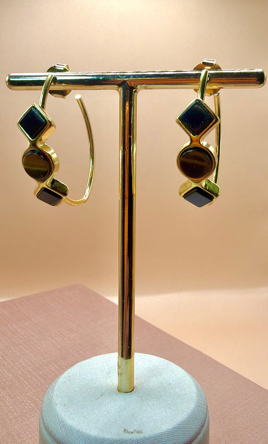 Goldener Ohrring mit organischem Design und gemischten Steinen