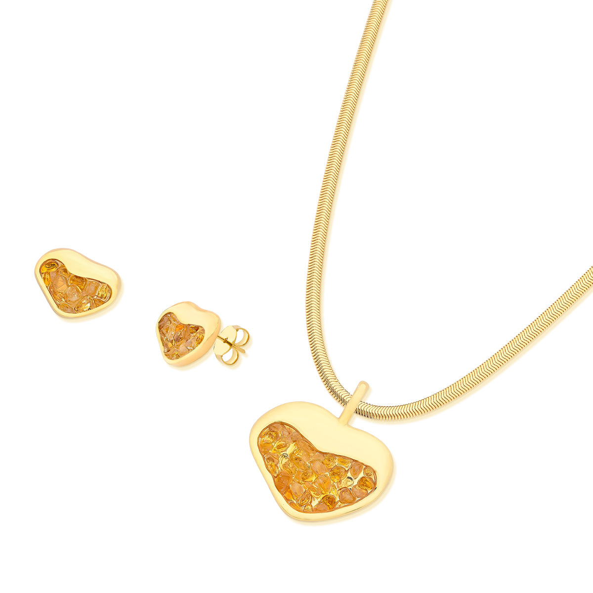 Vergoldetes Set mit modernen herzförmigen Rohsteinen