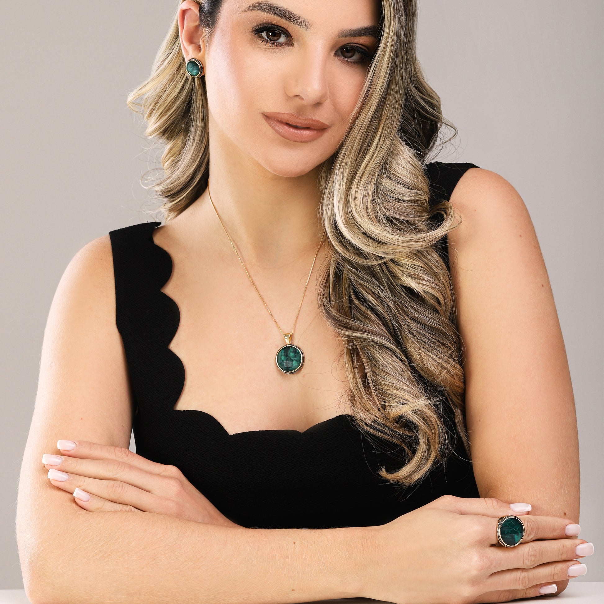 Bague dorée avec rhodium noir et pierre ovale