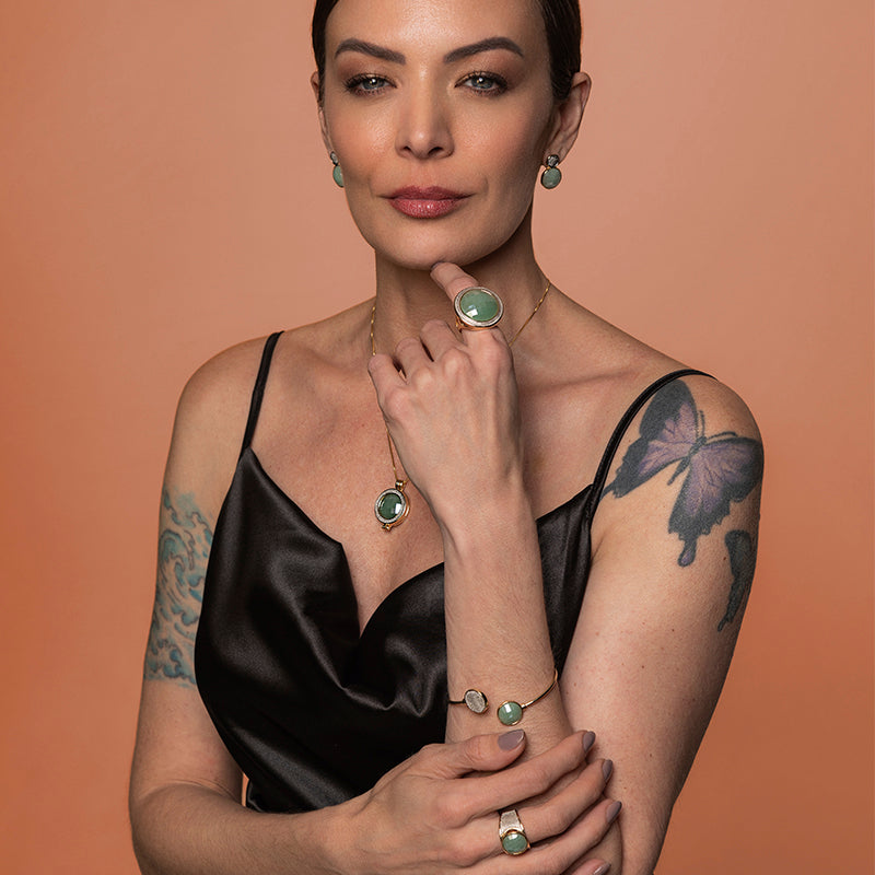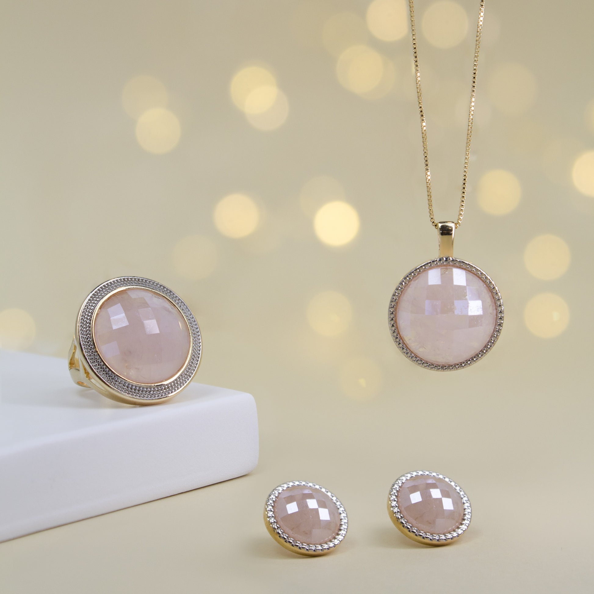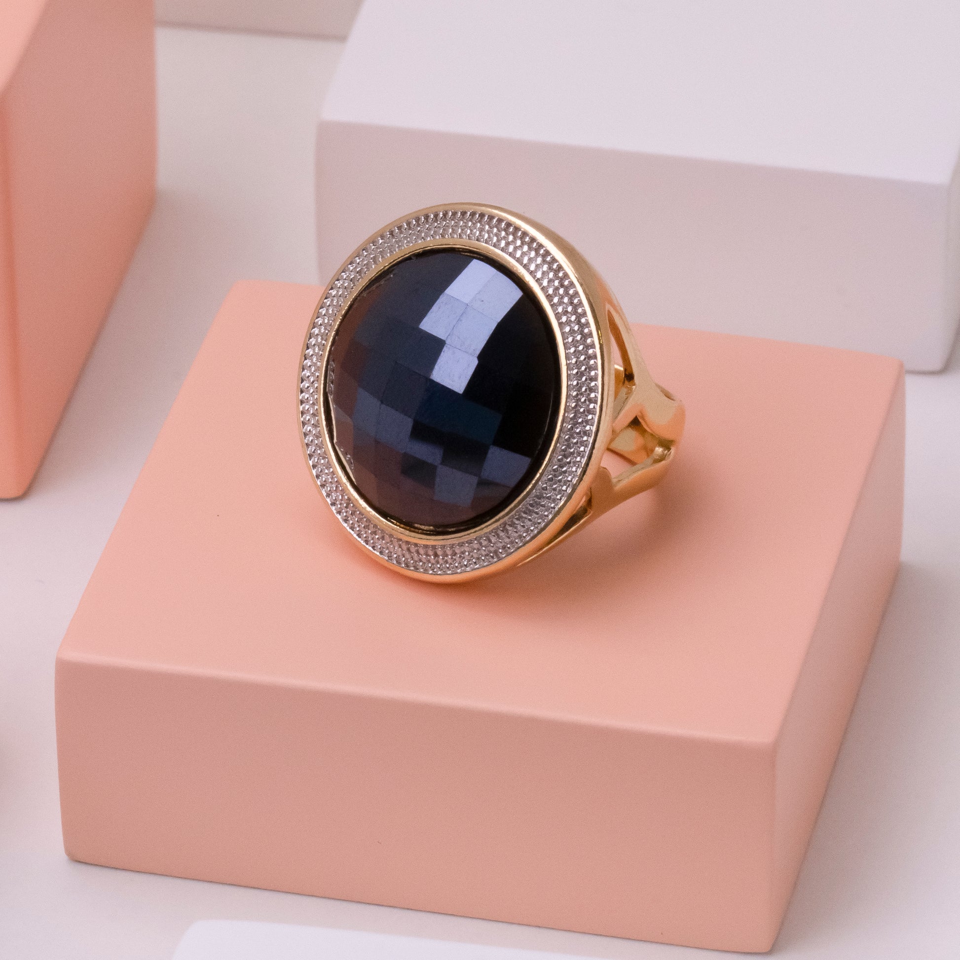 Ajoutez une touche d'élégance et de personnalité à votre look avec cette bague imposante. La pièce se distingue par sa pierre centrale de forme ovale, qui affiche une beauté unique avec ses veines et ses facettes qui captent la lumière de manière singulière. Le contour serti de petits cristaux en rhodium blanc ajoute un éclat sophistiqué, tandis que l'anneau plaqué or au design ajouré confère une touche moderne et légère. Cette bague est le choix parfait pour ceux qui recherchent un accessoire marquant et intemporel.