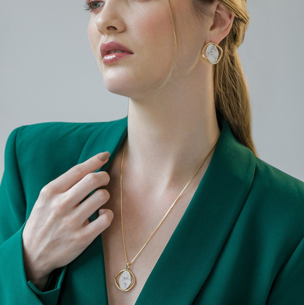 Boucles d’oreilles sophistiquées plaquées or, au design contemporain mettant en valeur la beauté unique de la pierre naturelle bleue. Le contraste entre l’or et la teinte profonde de la pierre crée une pièce élégante et polyvalente, parfaite pour celles et ceux qui recherchent du style avec une touche d’exclusivité.