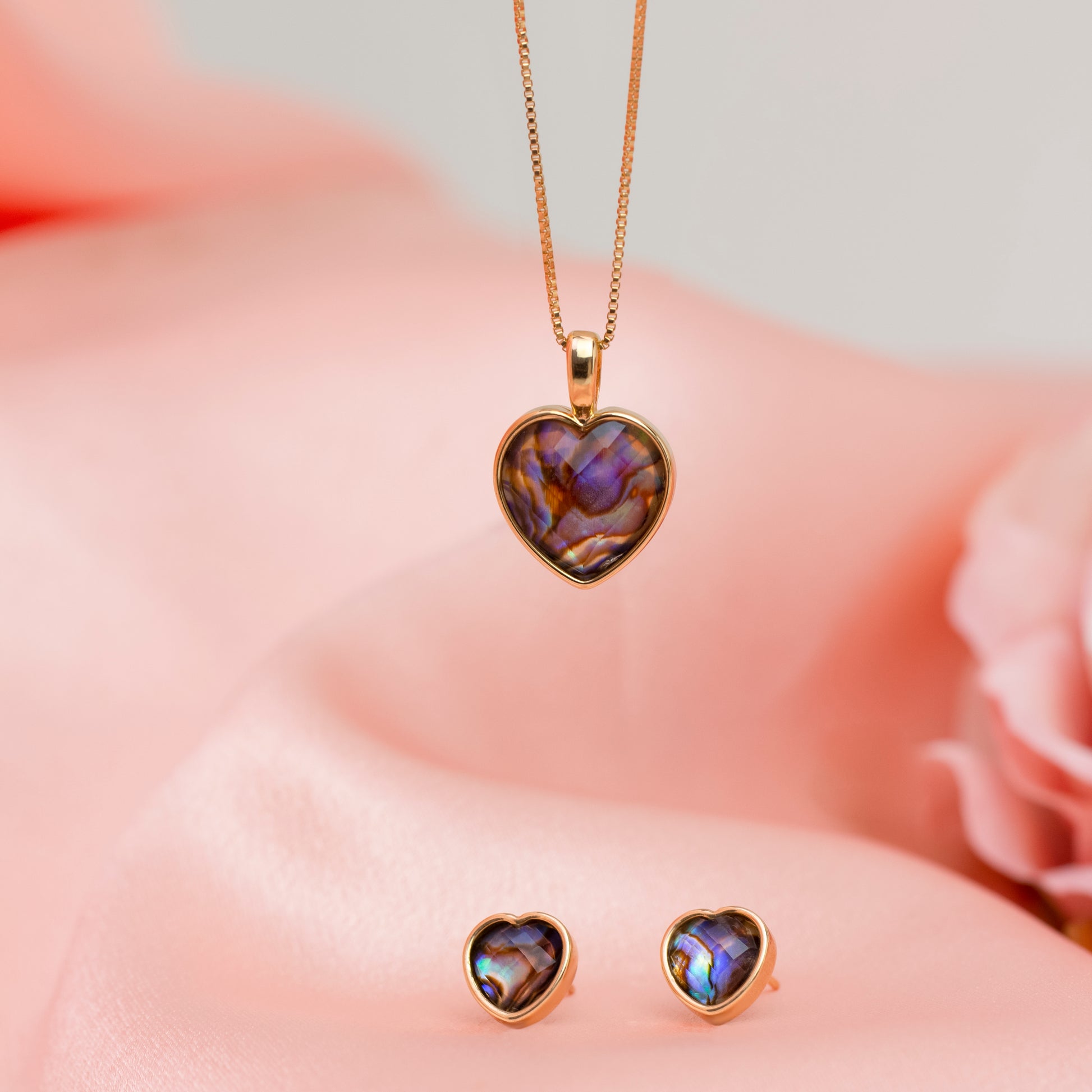 Célébrez l'amour et la beauté avec cet ensemble délicat et élégant. Plaqué or, le collier a un pendentif en forme de cœur qui abrite un matériau irisé, reflétant les couleurs de manière éblouissante. La chaîne vénitienne, fine et délicate, complète la pièce avec légèreté. Les boucles d'oreilles à clous, qui suivent le même motif, créent une harmonie parfaite. C'est une pièce polyvalente et intemporelle, idéale pour ajouter une touche romantique et sophistiquée à n'importe quel look.