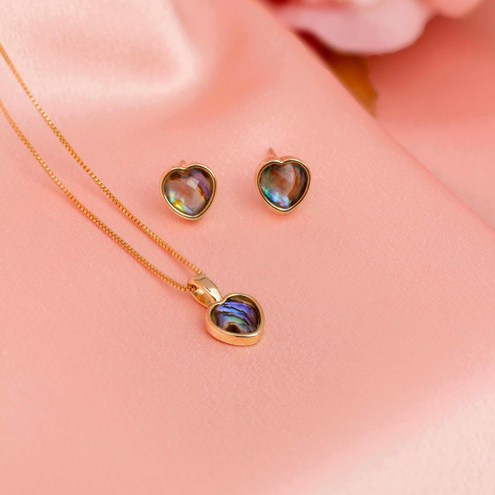 Ensemble doré avec cœur de nacre