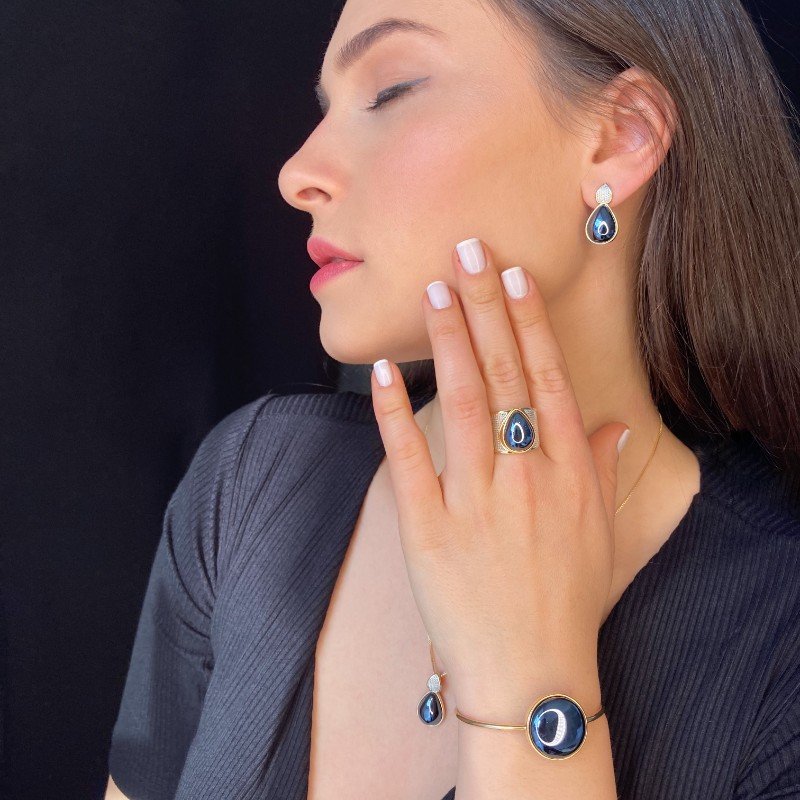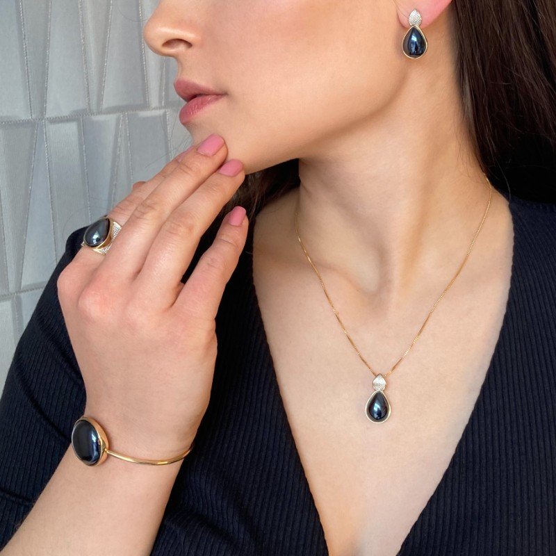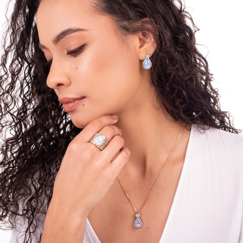 Un classique revisité avec une touche moderne. Cet ensemble associe l’élégance du plaqué or à l’éclat subtil du rhodium blanc, sublimé par des pierres en forme de goutte à effet nacré qui reflètent douceur et lumière. Un bijou raffiné et polyvalent, parfait pour toutes les occasions.