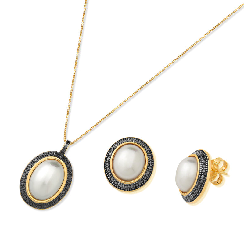 Parure plaquée or et rhodium noir